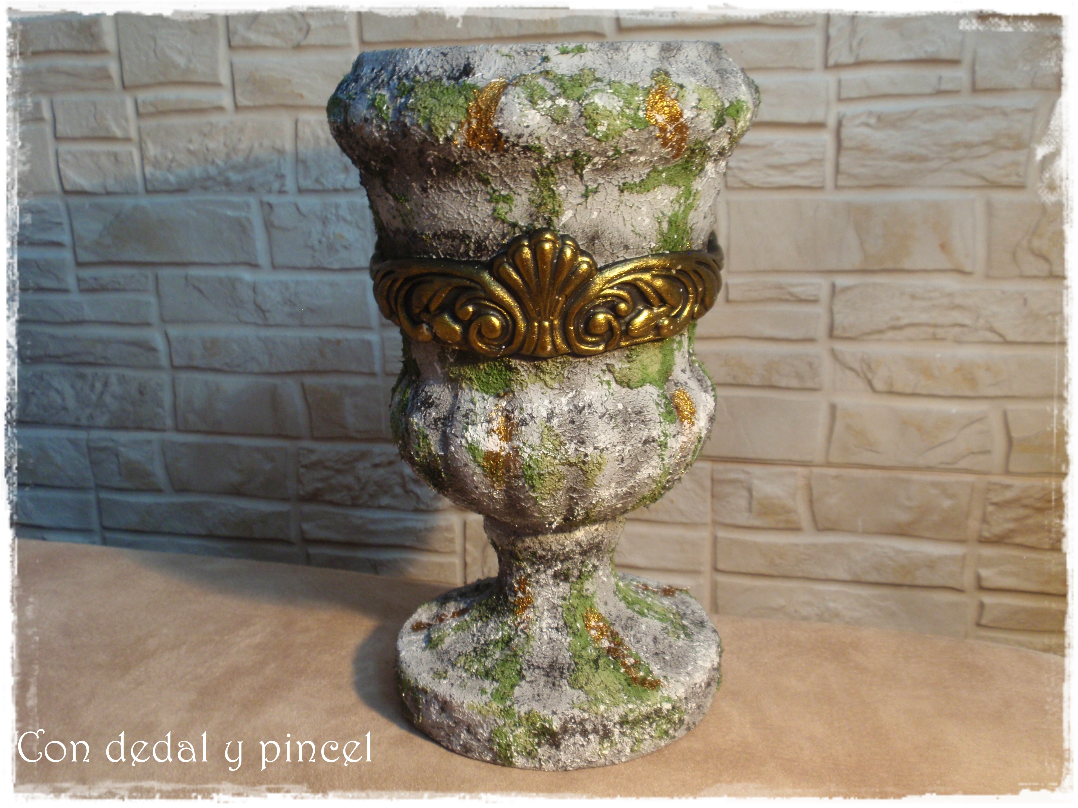 Copa/macetero que recupere utilizando productos Cadence. La pieza central la realice con pasta de modelar. Como es habitual en mi, olvidé hacer foto al antes, pero os aseguro que el cambio es brutal. Este efecto musgo y viejo que conseguí le quedo ideal. Os gusta??